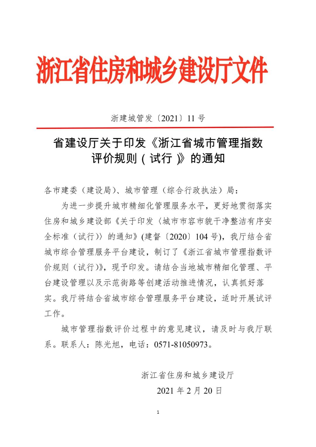 浙江省建設(shè)廳關(guān)于印發(fā)《浙江省城市管理指數(shù) 評價規(guī)則(試行)》的通知