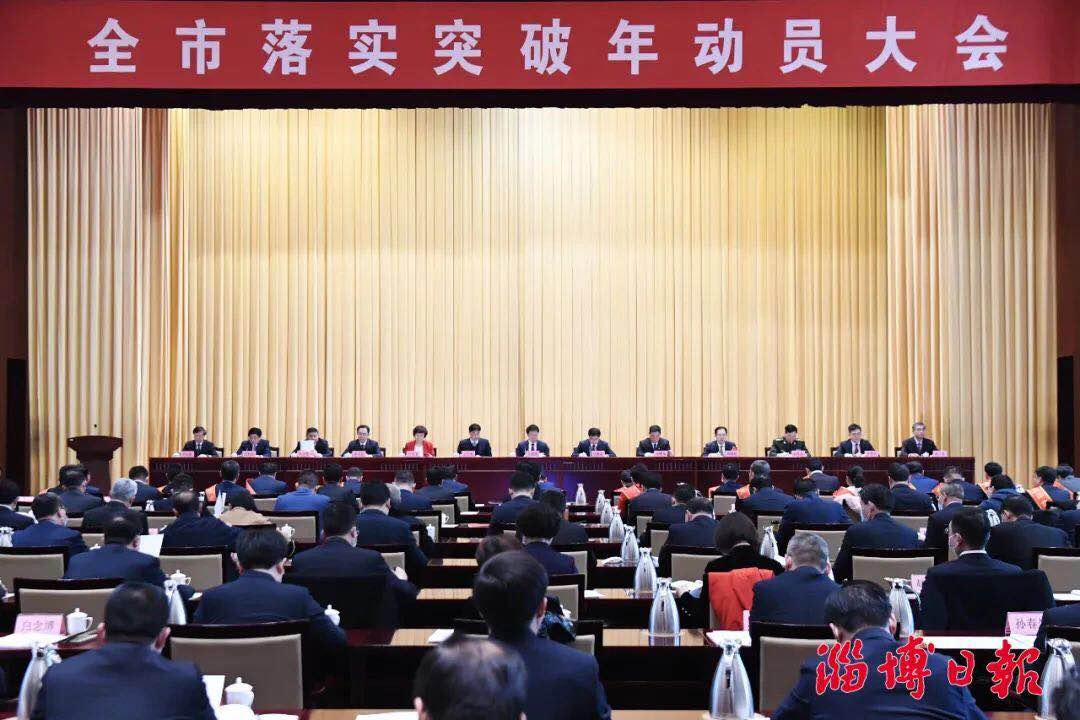 2021年2月18日,淄博召開全市落實突破年動員大會,淄博市委書記江敦濤講話,淄博市委副書記、市長馬曉磊主持會議...