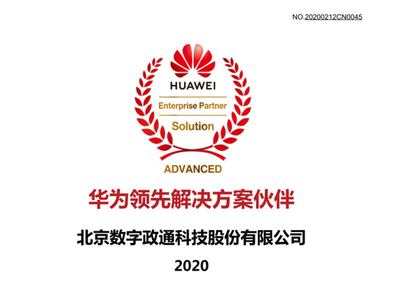 數(shù)字政通作為ISV(Independent Software Vendor)獨立軟件供應商加入華為技術有限公司解決方案伙伴計劃,獲得2020...
